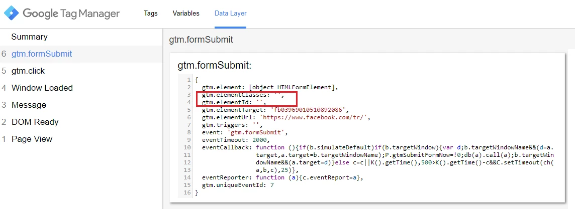 However, when I'm looking at the GTM debugger, I see the following in the Data Layer: