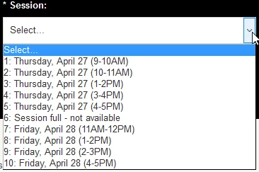 I have an event that people can register for, but only a number of people can register for each session. Once a session becomes full, I'd like to update the selector... does it make sense to just remove it? My concern with deleting it was there would be a jump from session 5 to session 7, for example. Or, am I able to keep it but make it not selectable?