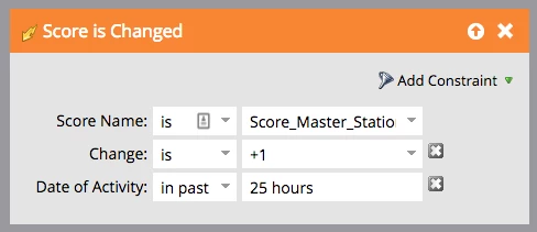 Instead of waiting a day, can I trigger on score changes that happened 24 hours in the past (or 24-25 hours in the past)? The issue with the wait step is that if I only allow people to enter the campaign once or every ___ days, I have a bunch of people who enter the campaign, then get removed from it before I send them any email. If I can avoid the initial wait step, I'll guarantee that everybody in the drip campaign gets at least the first email.