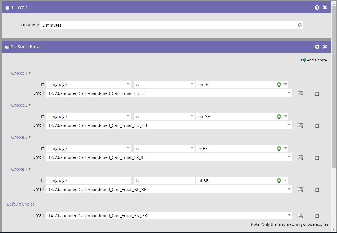 The glitch in this is that everything needs to be done in one trigger smart campaign, because I need the triggerobject to show the products & back to cart link in my email.
