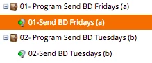 Two programs under nurture stream program: one handles Friday sends, and another one handles Tuesday sends.