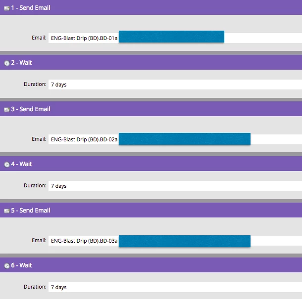 Within each program, I set a smart campaign that waits 7 days between each email send.