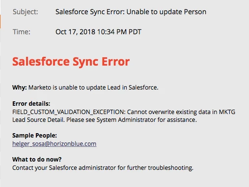 How do I change the email address that notification alerts are sent to from Marketo? I want to change an existing email alias that is receiving Salesforce Sync Error notifications.
