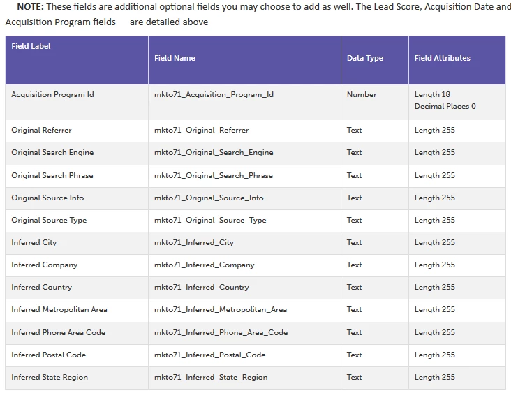 Due to changes to the SFDC integration architecture, action is required soon to continue syncing a small number of fields to your Salesforce instance. There are 16 fields affected, but most customers are only using a couple of these fields in their Salesforce instance – Lead Score and Acquisition Program. The configuration update will shut off the sync of data to the MLM package and these fields, so the data in those fields in SFDC will become stale and won’t update.