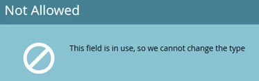 The values of the field may be cleared when you change the field type. The warning message you see will vary depending on what Field Type you're changing from/to.