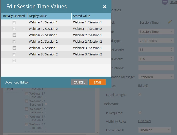 As you can see, the Session Time field is not displaying correctly with no text showing and only checkboxes.