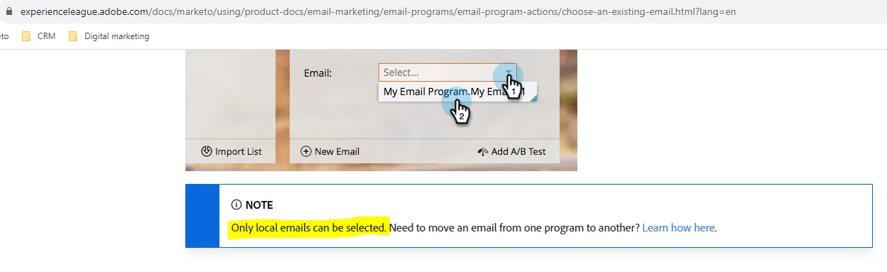 We have a pain point of not being able to choose any email when using email programs, which can only send local emails. https://experienceleague.adobe.com/docs/marketo/using/product-docs/email-marketing/email-programs/email-program-actions/choose-an-existing-email.html?lang=en
