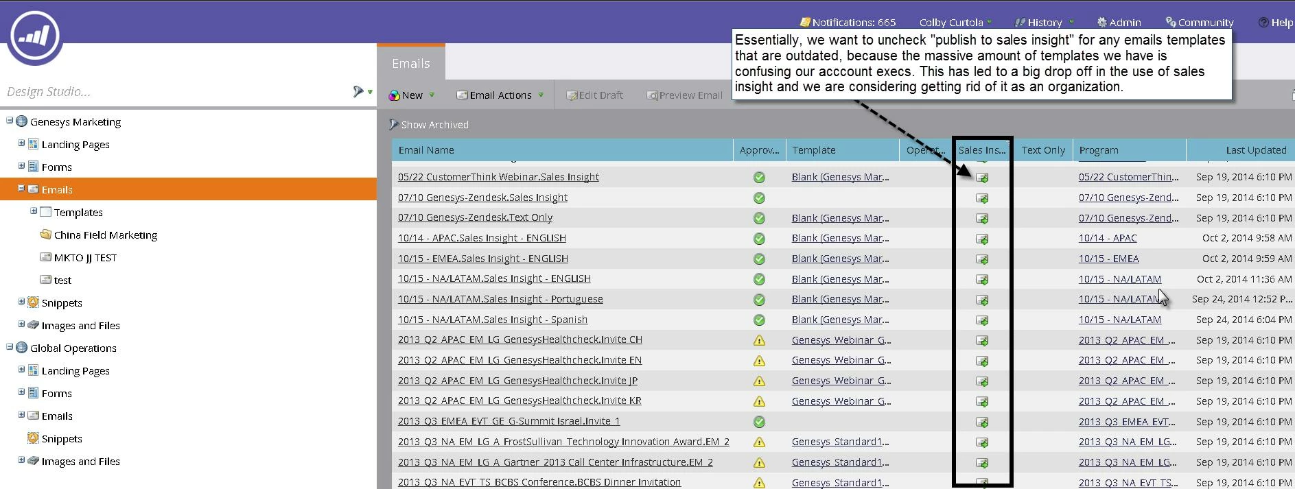 I am trying to do some house-keeping in Marketo and I have been tasked with creating a guide for our lead reps that shows them how to go through and un-publish old email templates.