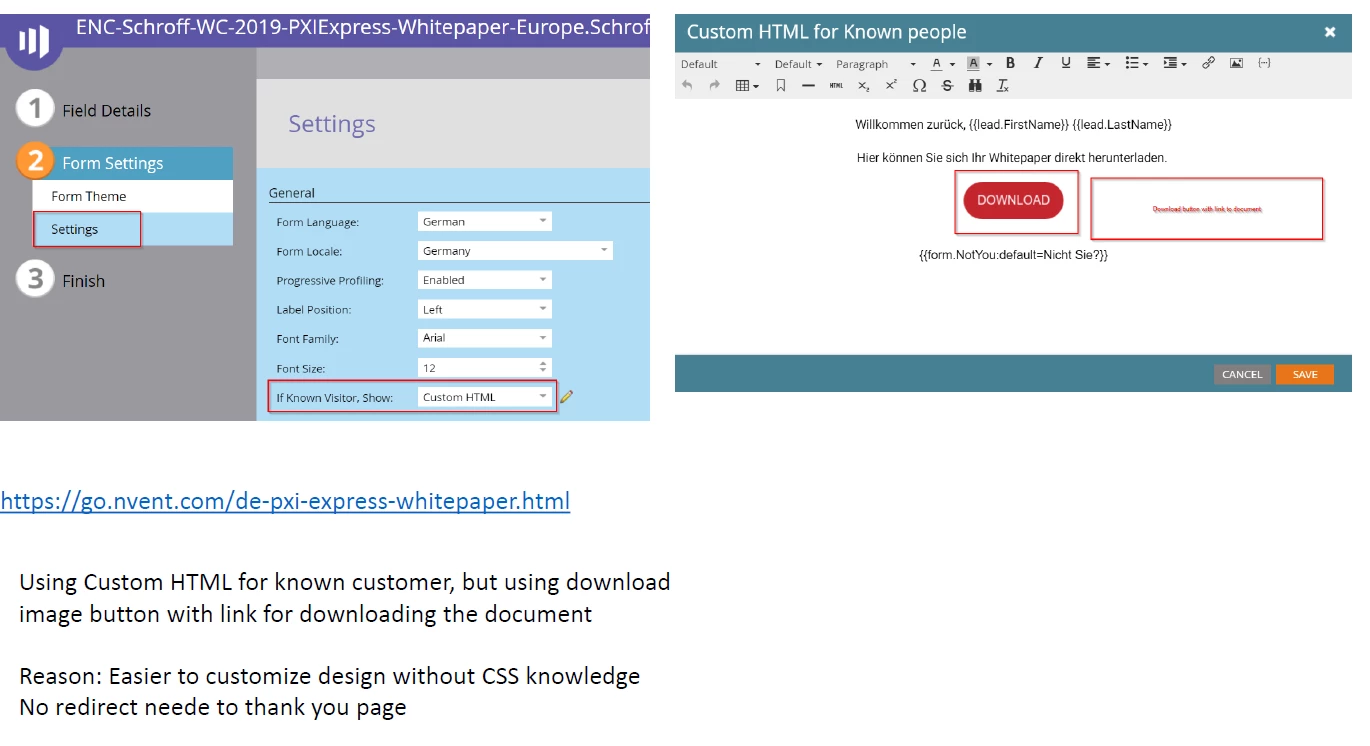 The pdf is on the following page, but only visible if you are a known user. As I am using the Known Visitor HTML functionally, so people will get the link directly when a known visitor.