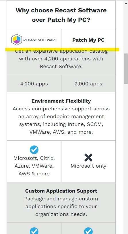<td style="width: 800px; height: 75px; text-align: left; vertical-align: middle;" scope="row"><span style="font-size: 22px;"><strong>Why choose Recast Software over Patch My PC?</strong></span></td>