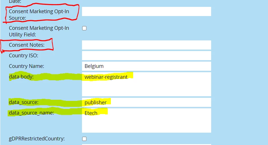 Is it possible to combine (concatenate) multiple fields into one field in Marketo. I am trying to combine our "data_source,-data_source_name-data_body fields into our "Consent Notes" field without having to concatenate the fields in an excel before uploading. On the attached image, I am trying to combine (concatenate) the three fields in yellow into one field combined in the "Consent Notes" field.