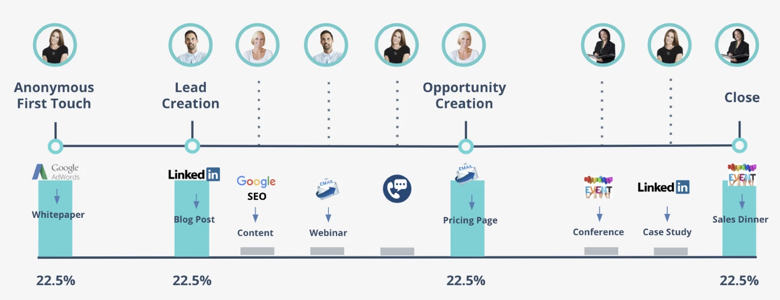 The Full path model will weigh the FT, LC OC, and Close as 22.5% and the other 10% gets evenly distributed across all middle touches (MT).