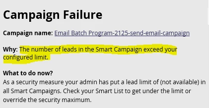As we know communication limit only apply to smart campaigns not for email send program. No when I am running an email send program it is being abort by saying no os leads are more than limit defined.