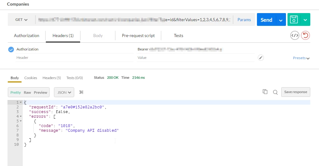 Company API disabled for marketo
