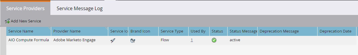 Here is how the service appears in the Service Providers page: