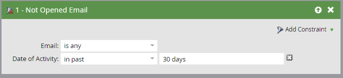 I am trying to send a campaign to a database where the email should go to any person who has not opened any of the emails from us in the last 30 days. I am able to use the conditiuon only for specific emails in the smart list not for 'all emails' sent. Can somebody help me with that?