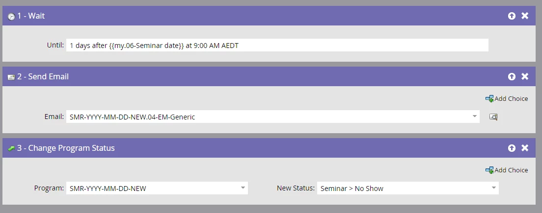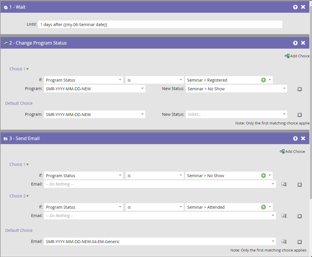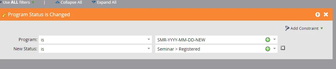 1. Prospect fills out form to attend seminar > program status changed to registered