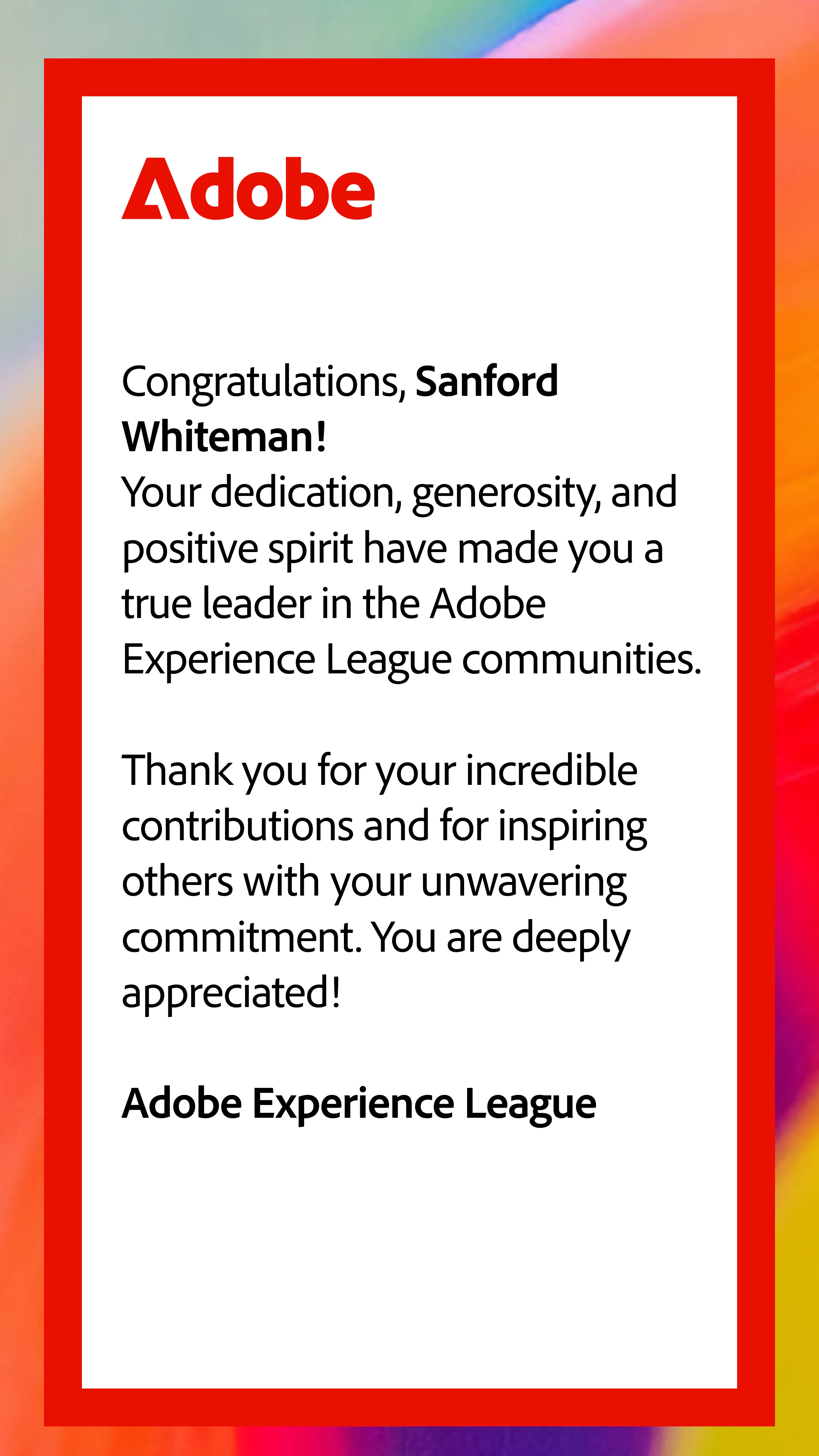 We are excited to announce the Adobe Marketo Engage Community Member of the Year for 2024! A big congratulations to this year’s winner: @sanfordwhiteman.