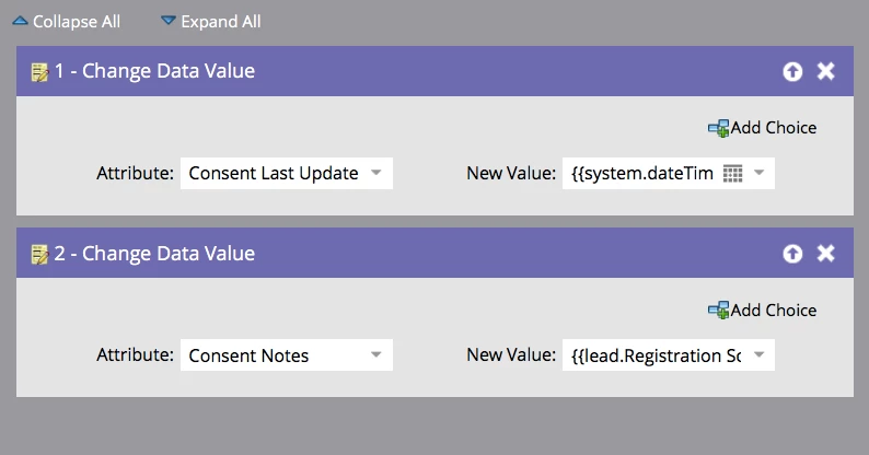 change data value :if form fill out is any consent note update with {{lead.Registration Source Info}}
