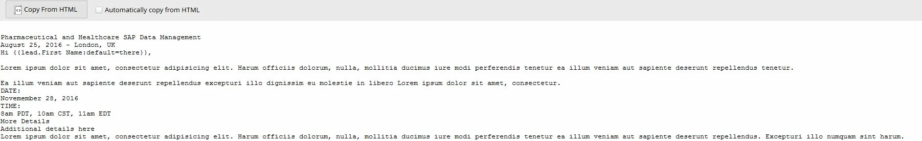 When using the 2.0 editor, all HTML seems to be automatically copying to text as expected except for buttons. Neither the button text or the link will transfer to the text version whether Automatically Copy from HTML is checked or not. Has anyone else experienced this? Is there something that needs to be added to the template code? Screenshots attached.