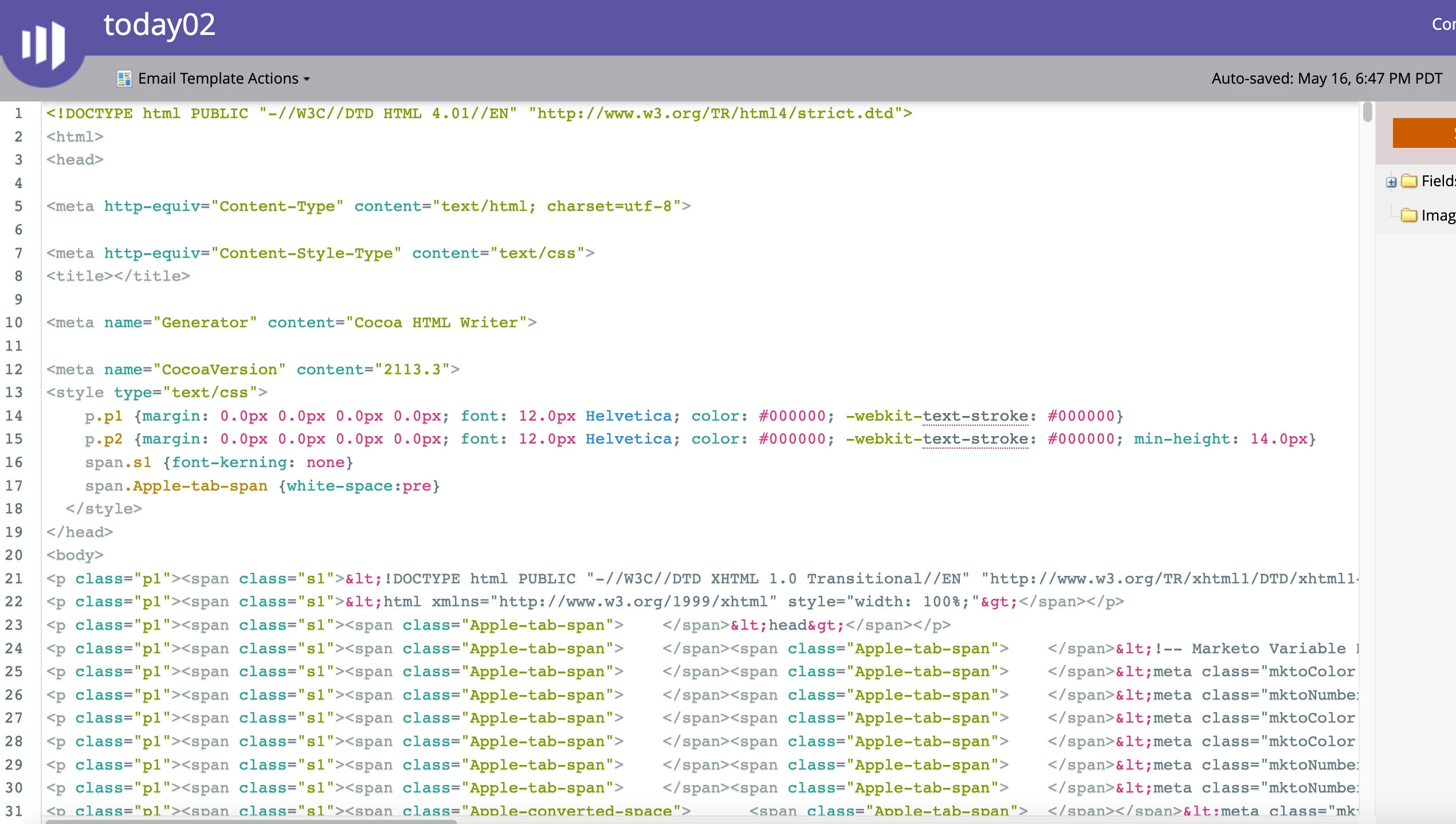 I copied this html and used postman to create a template, "today02", and here is what the html looks like: