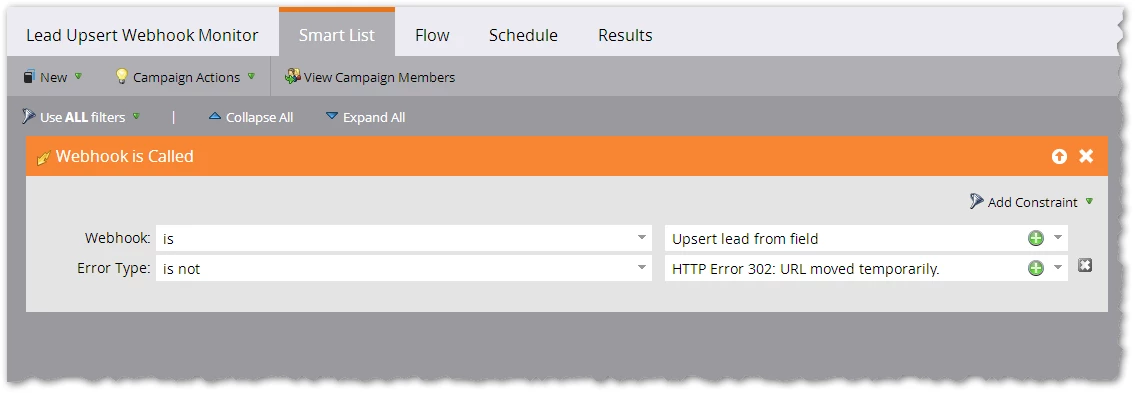 You want to make sure this webhook always returns an HTTP 302 response. Any other response code is an error. So create a campaign that listens for errors and set up alerts/subscriptions/etc. accordingly (how to react to errors is up to you).