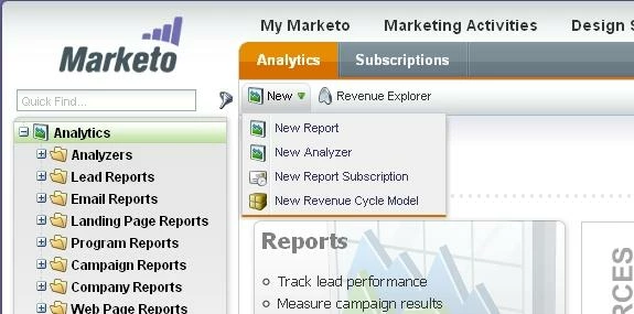 I want to create model in Analytics. But New Revenue Cycle Model from the New menu. In the dialog that appears.