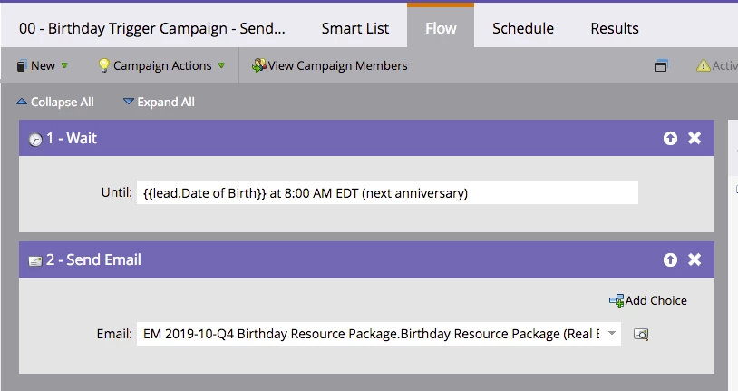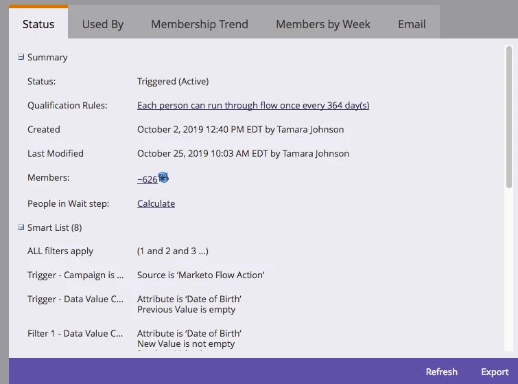 I've found info on creating campaigns to send an email on a client's birthday. The campaign is launching correctly. However, we have more campaign members added and I did not see the list increase. The original run started @ 626 with 549 in waitstep. Once we update the DOB for clients the members should be 1,347 with others in the pending waitstep.