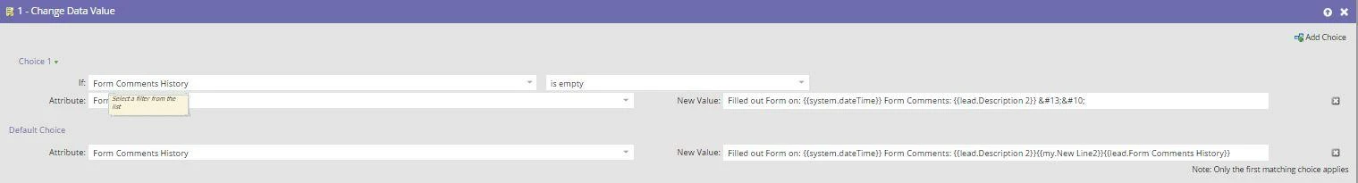 I am looking to figure out some way to use a program token in the default choice of this Change Data Value Flow. Right now I have a program token in the place where I want it but I can't figure out how to get that to represent two new lines.
