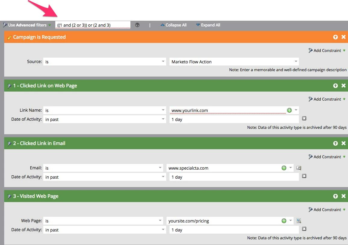 I'm trying to create automated leads for our sales department. I want to create about 5 triggers that when they hit these a task is created in Salesforce. The complicated part is I want to have a list of 5 or more triggers and say if they hit any 3 of them then the task would be triggered. Does anyone know if this is possible, and if so how can I do I do it?