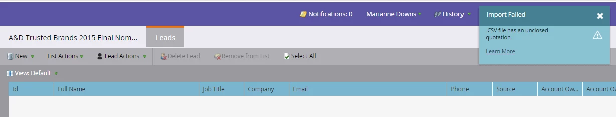 CSV file list import into Marketo - Import Fail due to unclosed quotation - How do I fix?