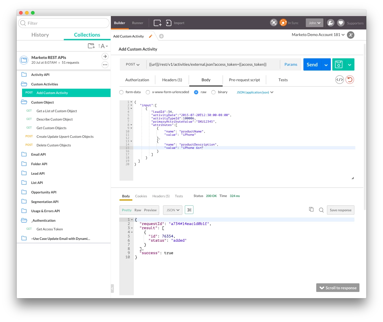 The example I've chosen is "Purchase Product". When a Lead purchases a product, you might want to send a welcome email, or add that lead to nurture stream. When passing on your request, you should have these ready to give to support or consulting in a concise format to avoid confusion. Note that you do NOT need a "purchaseDate" attribute, as Marketo give you a "date of activity" attribute for free.