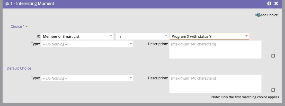 I'm trying to build an interesting moment for a few advertising programs we built out. To get into the ad program, people don't need to fill out forms, there are other triggers based off of UTM content and page views that add them to a program. My question is: am I able to create a custom type of Interesting Moment that just has the name of the program they are a member of? Ideally I could trigger the interesting moment off of "Program Status Was Changed' or something like that.