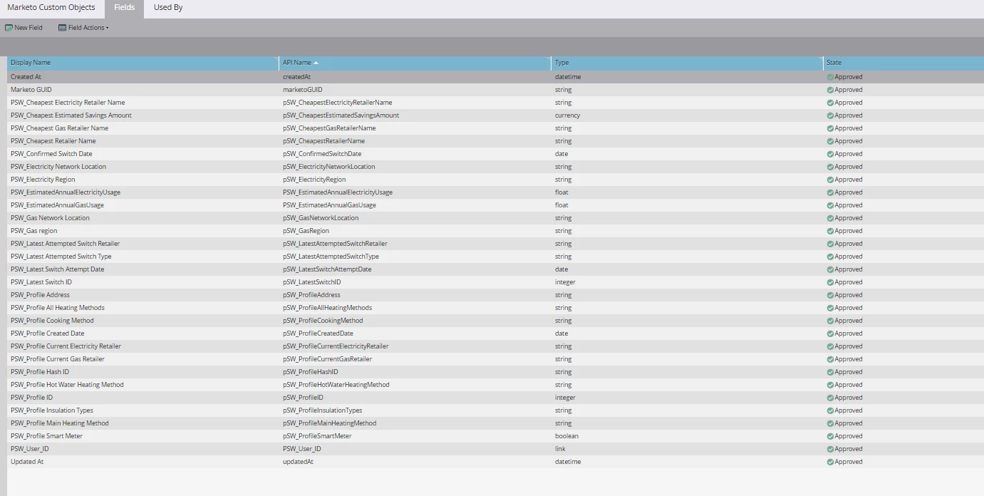These two custom object fields are already approved at the moment and data have been sent to them correctly when I view lead records. We do also have two normal 'Created At' and 'Updated At' fields (I assume these are the standard Marketo ones) that appear in the lead record info page but these are used to capture a different stream of info. And so, ideally, we just want the two custom object fields appear as constraints like the other fields inside that custom object.