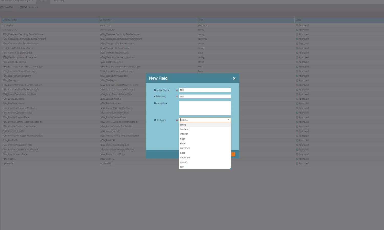 3. 'Link' isn't an option when trying to create a new field inside this custom object