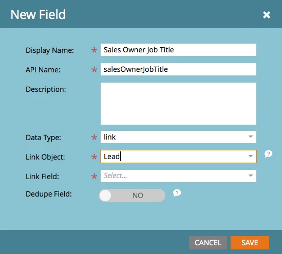 I need to create a custom token that is linked to a new data field in the Marketo database I've created. For instance, Marketo already had the data point 'Sales Owner Full Name' (and it was an available token) but I now need to use 'Sales Owner Job Title' (which is not a data point in Marketo nor a current available token). First, I started by creating a 'New Custom Field' under the Field Management menu. Next I was going to create a custom object and link to that data point. But when I go to create the custom object, the new custom field I created is not an option in the 'Link Field' drop down menu.