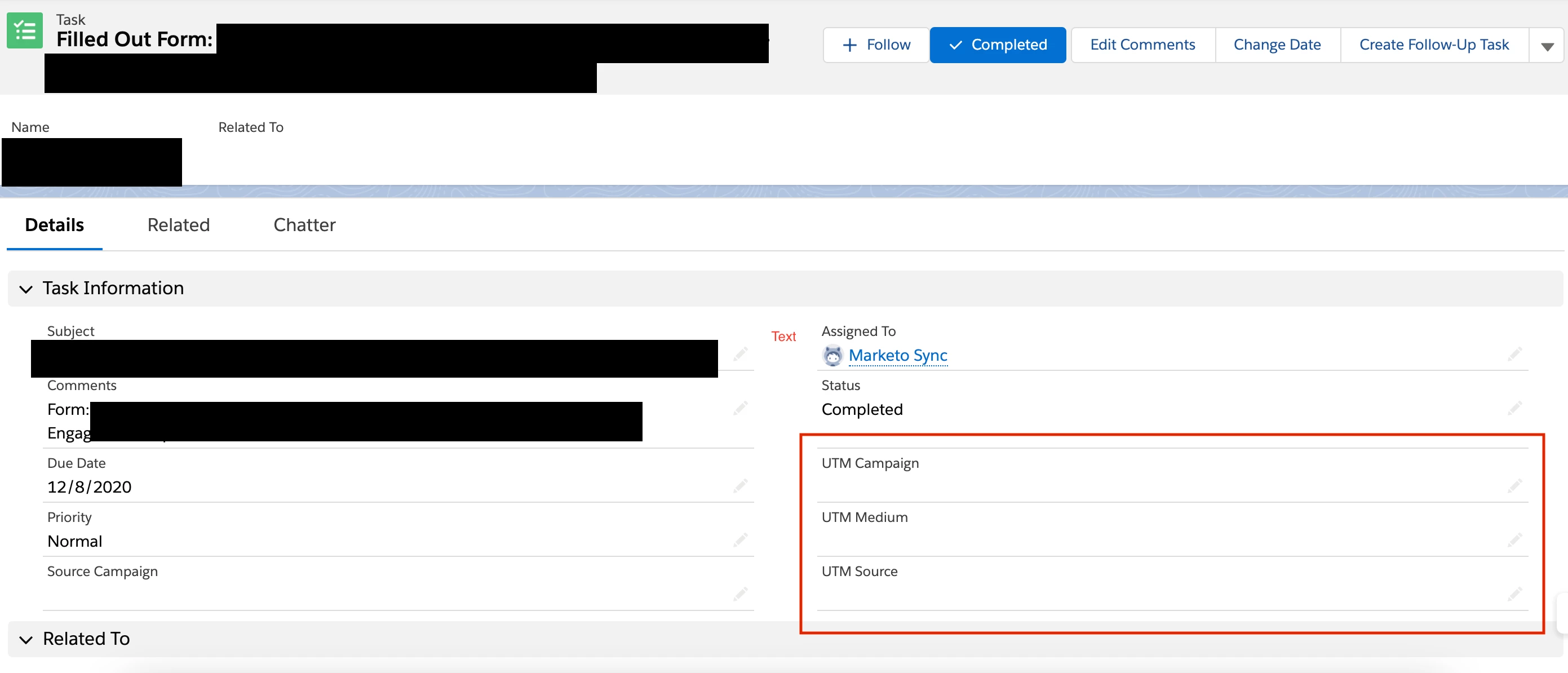 Does anyone know if it's possible to push the data from the hidden utm fields from my forms in Marketo to the Salesforce activity task. See the attached photo for what I'm referring to from within Salesforce.