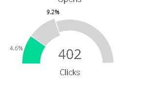 3) In the Opens, Clicks, Click to Open, and Unsubscribes graphs, there is a wider section and a narrower section. The wider section is split into green and gray halves. Why are they split and what does that mean? For example, if Click to Open shows 8.2% as the main result, the graph shows 8.2% in green, 16.4% at the end of the wider gray, and then the rest is a narrower gray. What is the wider gray part showing?