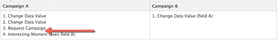 1. Change Data Value 2. Change Data Value 3. Request Campaign 4. Interesting Moment (uses field A) | 1. Change Data Value (field A) |