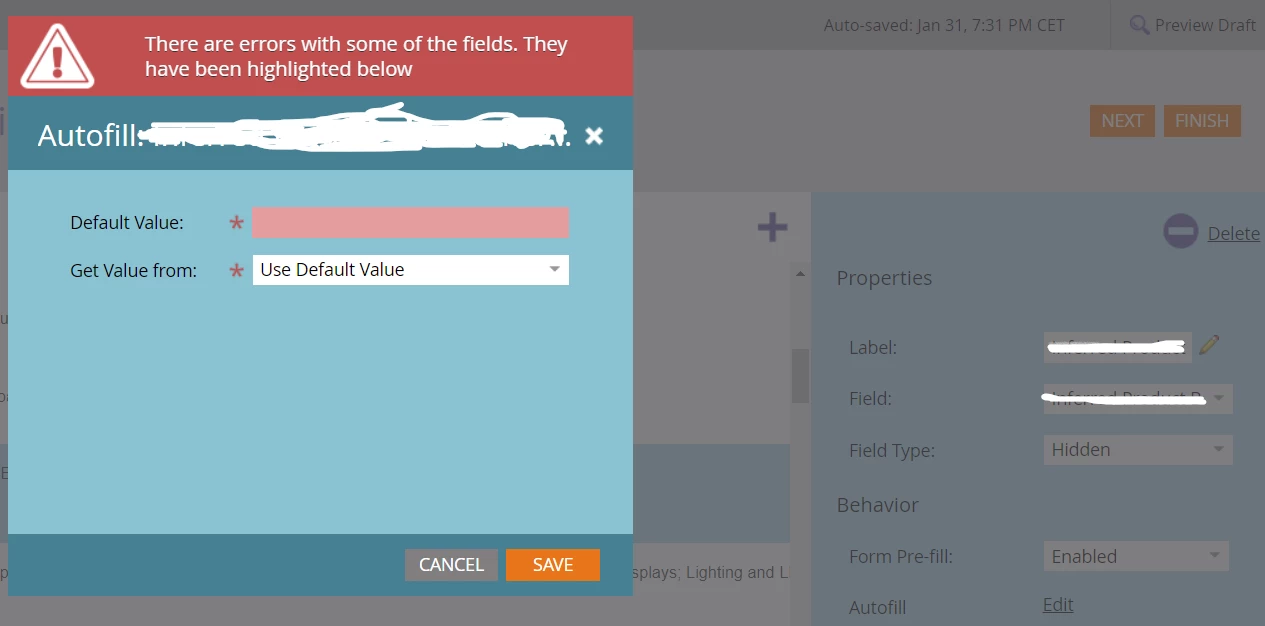 Is it possible to delete the value of the Autofill after putting one? I got error message while trying to clear them.