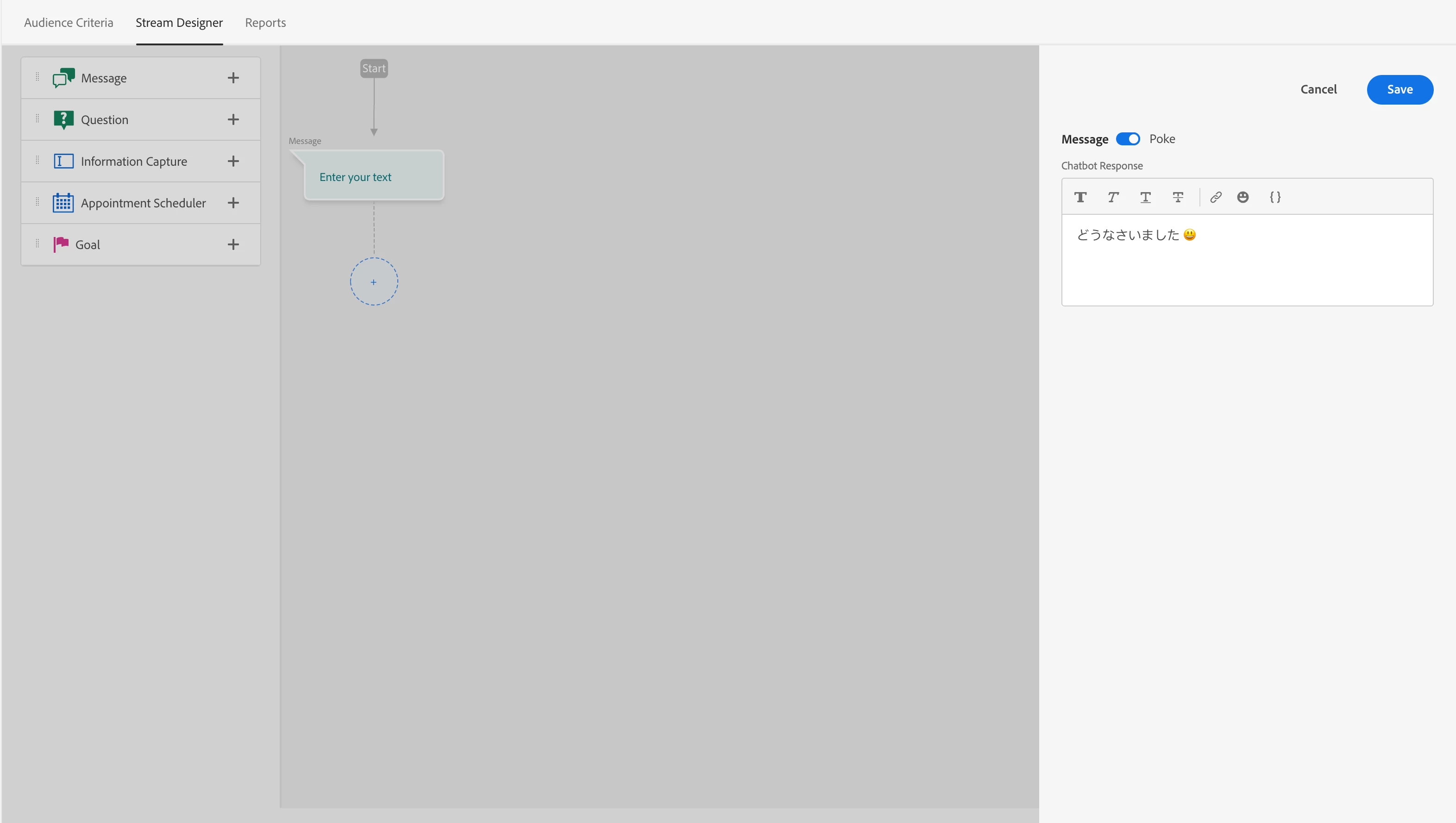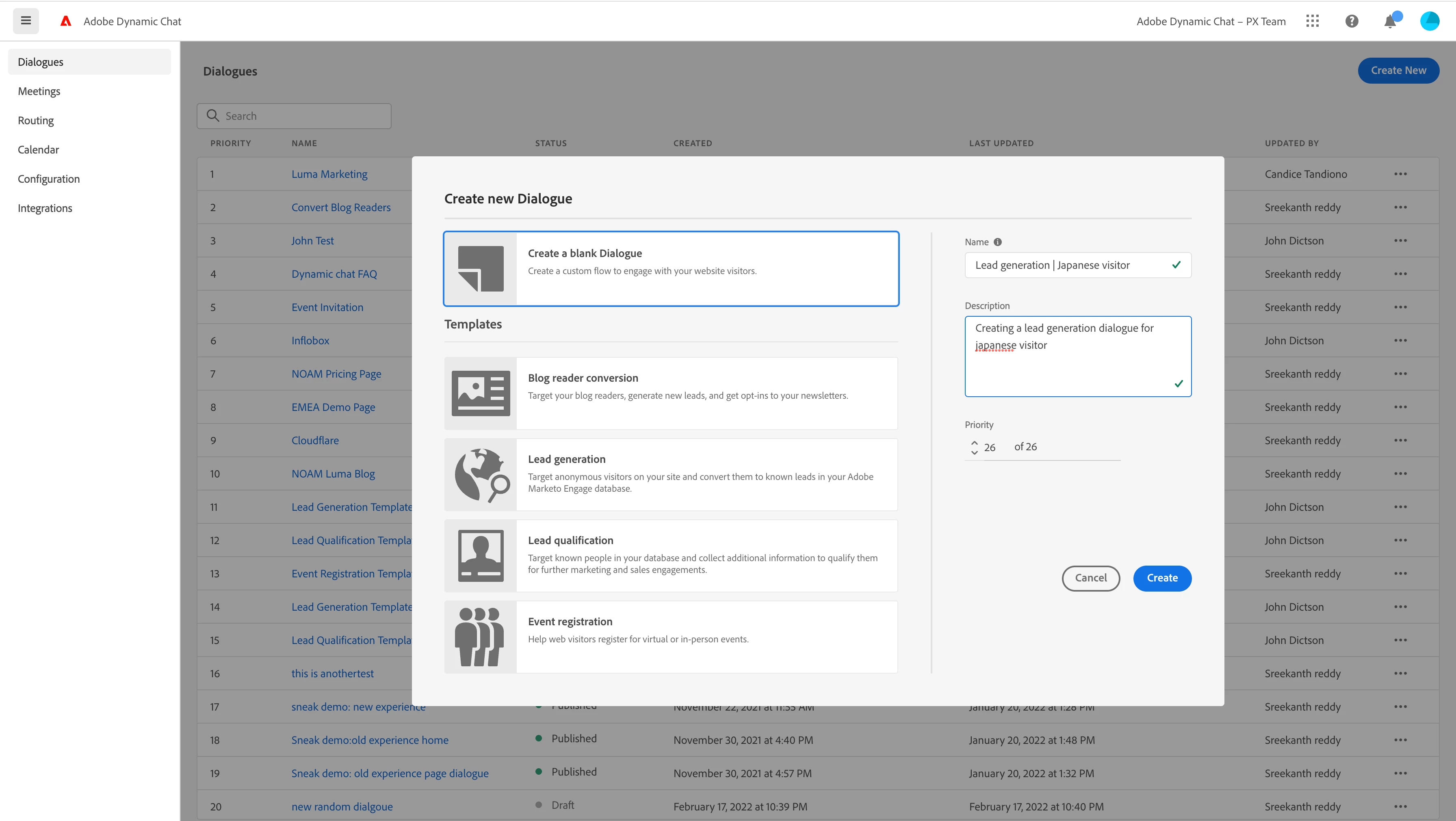 In Dynamic Chat, marketers can easily create any dialogue in a language of choice. With a simple clone, marketers can even create the same dialogue for different language web visitors.