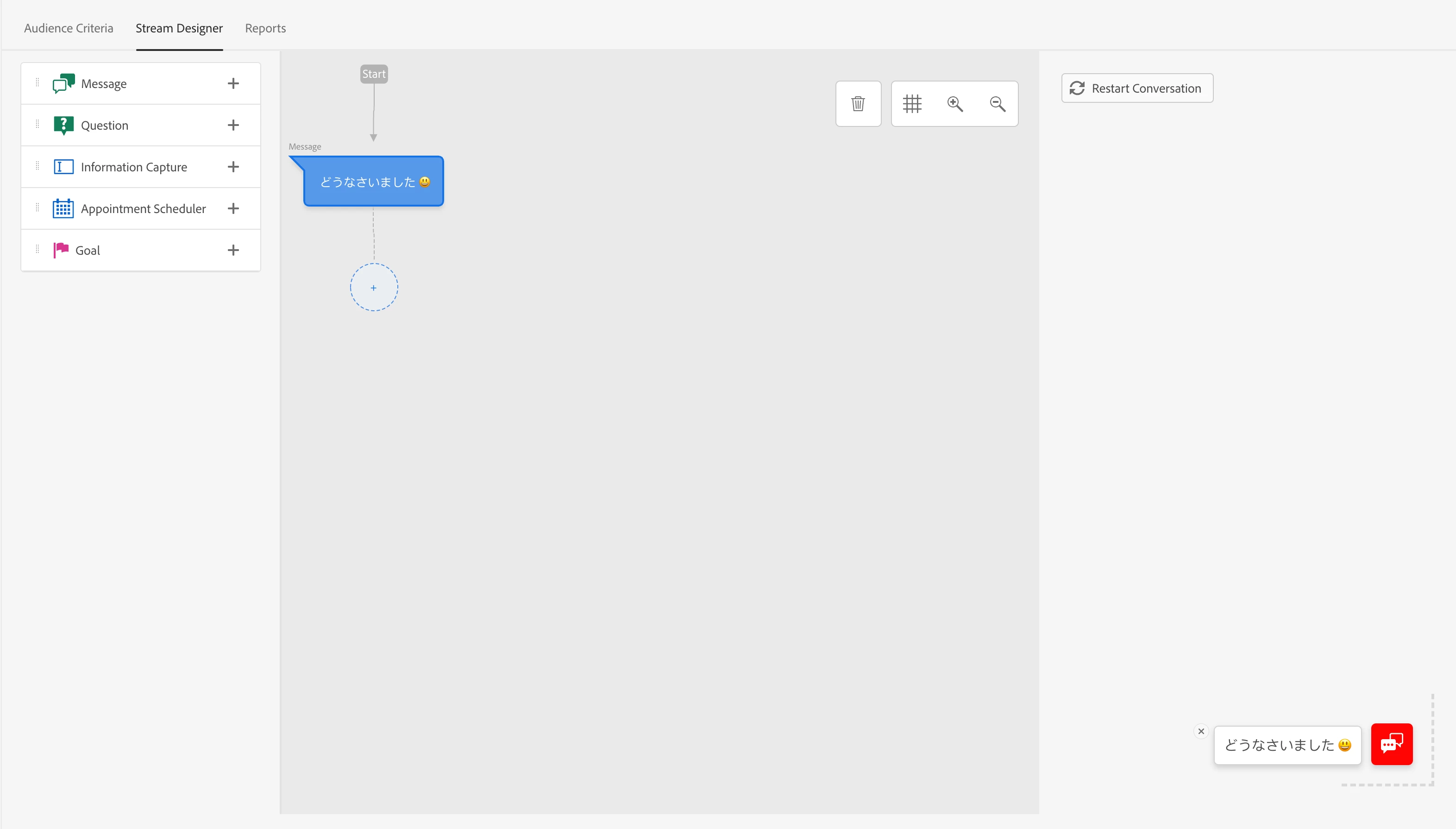 d)This way you can create the complete flow in the language of choice and preview your dialogue before publish