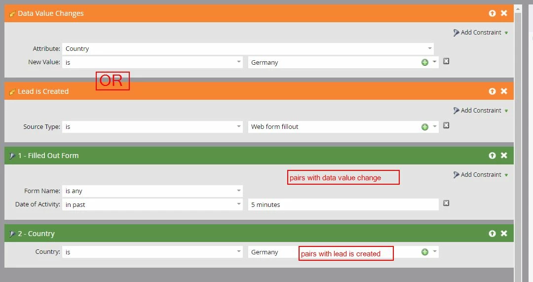 Triggers: Lead Created and Data Value Change (country)