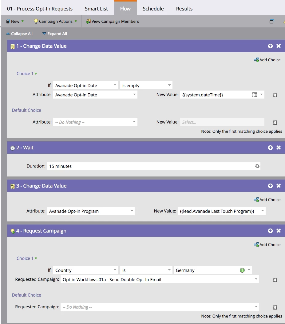 Hi, we are refining our double opt-in flow for a specific country (Germany in this case). We have two separate flows: one that should be triggered by the contact actively changing the data (eg, form submit) and another for when the change is initiated on our side (smart campaign, sync, import, etc). My question is how can we best distinguish these two scenarios, given that data value change trigger has limited constraints.