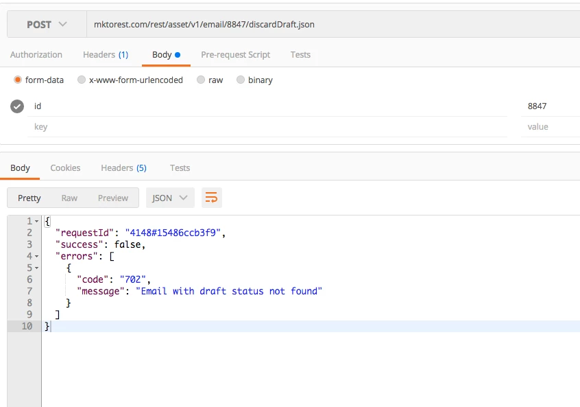 Discard Email Draft by Id via REST API not working
