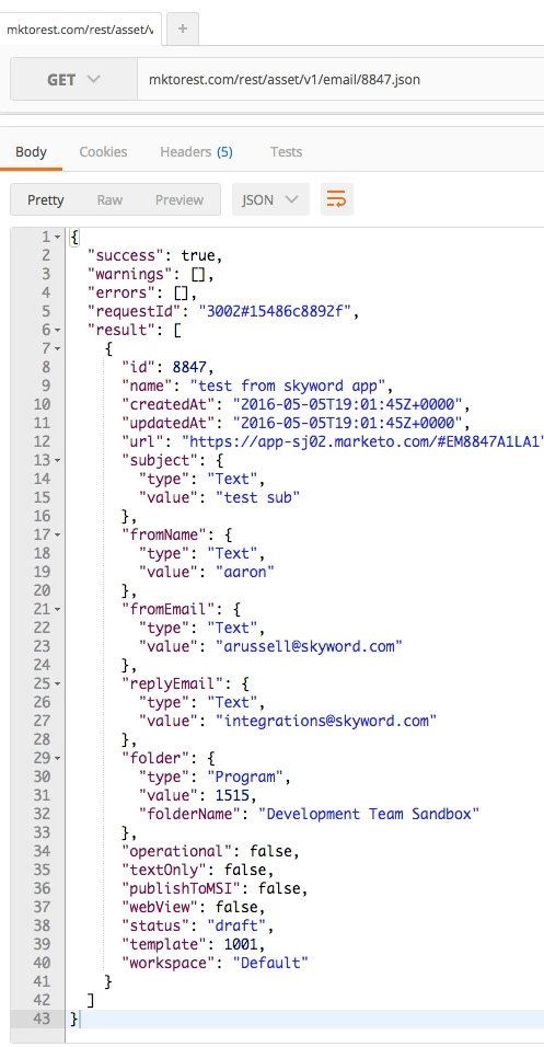 When I look up the email's status I get this: