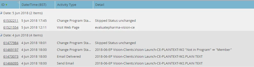 They are also almost all engaging at the same time - receiving the email at 6pm 4th June and viewing the page 12pm 5th June.