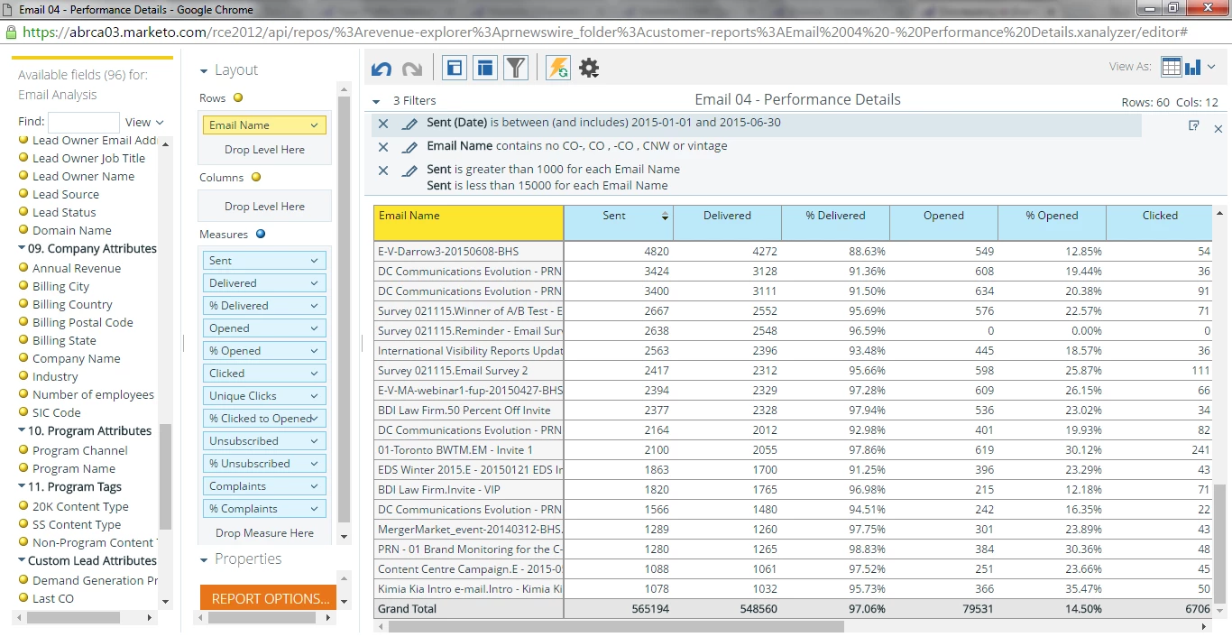 Is this potentially Marketo telling me that people had unique clicks across emails? That does not make sense to me as the Grand Total should be a sum of all clicks.