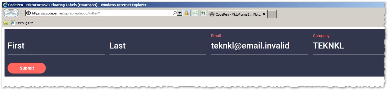 I'm trying to build out a form where the labels hidden until a user types into that field and the label then appears above. Below is a screenshot of what I'm trying to do. The hint text is in place and everything is styled and good to go, I am just not familiar enough with javascript to get this to work (I'm assuming its a javascript solution?). Note that this needs to happen on a per-field basis. I don't want all field to appear when you start typing into just 1 field. @Sanford Whiteman, I know you're the go-to guy with this sort of javascript question.