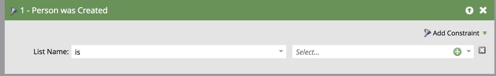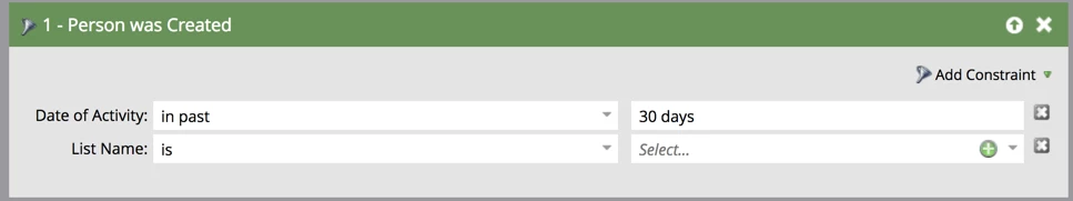 The correct way to do this is to use "Person was created" with a "List Name" constraint. That will give you the list of people who were created on list import.